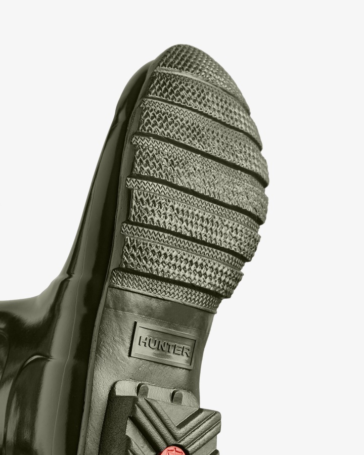 Size/Fit Summary: True to size,Regular fit. If you are in-between sizes,have a wider calf or want to wear a thick sock,it is recommended to size up.Perfect for wet weather conditions,this women's Rain Boot Boot has been at the heart of the Hunter Original brand since its introduction in 1956. Formed of natural rubber,each pair is made from 28 hand-cut parts and assembled over three days on an aluminium last bespoke to Hunter,before being vulcanized for superior protection. Featuring the Hunter Original tread pattern,and a comfortable polyester lining,this classic glossy olive waterproof boot is a rainy-day necessity.We recommend that all Hunter boots be worn with socks to protect the wearer's skin from contact with rubber. All Hunter Boot Socks are specially designed for use with our boot range and feature a fold over top to cover the rubber and nylon boot edge,preventing any rubbing associated with wear.WaterproofHandcrafted from 28 partsPolyester liningRubber outsole with Hunter Original tread patternCrafted from natural vulcanised rubber with gloss finish