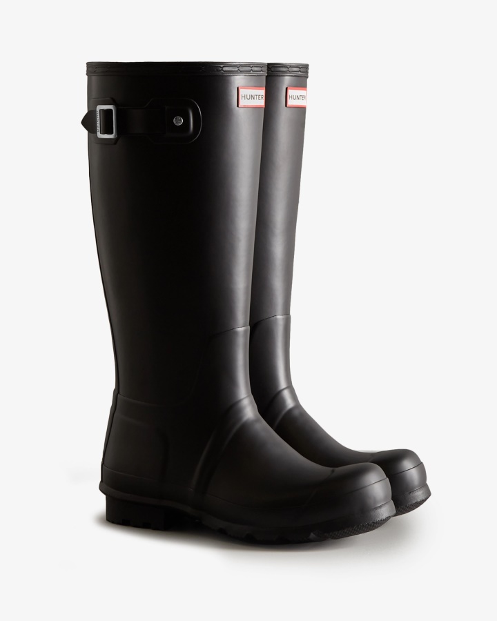 Size/Fit Summary: True to size,Regular fit.Designed with colder climates in mind,the Men's Original Tall Rain boot is updated with an insulated Vegan Shearling fleece lining to further protect against winter chills. Able to be worn in temperatures as low as -5 degree celsius(23 degrees Fahrenheit),your legs and feet will be feeling snug. First introduced in 1956,the Original Tall Boot is a globally recognised icon. Handcrafted from 28 parts,each boot is constructed from natural rubber which has been vulcanized for a fully waterpoof and durable finish. In a classic black matte,venture out with the confidence that you will be completely protected.WaterproofHandcraftedCan be worn in temperatures as low as -5 degree celsius(23 degrees Fahrenheit)Vegan Shearling lining for extra warmthRubber outsole with Hunter Original tread patternCrafted from natural vulcanised rubber with matte finish