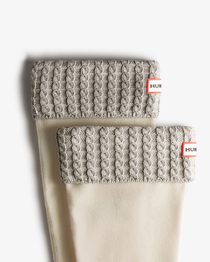 Size/Fit Summary: Sizes run slightly large ᄄC we recommend the following sizing for wearing with your Original Tall Hunter Boots. Size M = US Women's Size 5-8. Size L = US Women's Size 9-11,US Men's Size 8-10. Size XL = US Men's Size 11-13.Designed to slip inside our Tall Rain Boots,the grey Recycled Knitted Socks are made from 100% sustainable recycled polyester fleece for insulation. Now with a new improved fit,these socks are finished with a recycled poly-yarn cuff that will fold over the top of our rain boots.Certified vegan100% Recycled polyester fleece leg for warmth100% Recycled poly-yarn knitted fold down cuffDesigned to fit the Tall Rain bootPVC logo brandingUpdated improved fit for added comfort