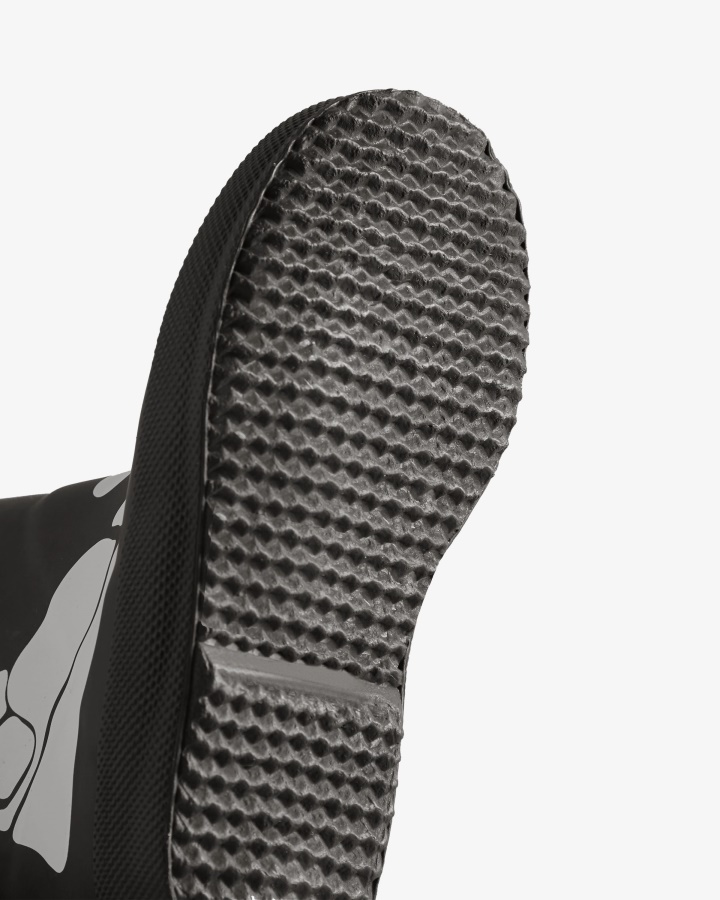 Size/Fit Summary: Fits slightly smaller,Regular fit. Sizing suitable for 18 months to 8 years old (size 5-2). If they are in-between sizes,it is recommended to size up.The Kids First Classic Skeleton Rain Boot is perfect for puddle splashing. Handcrafted from natural rubber with a spooky placement print,the flat sole and rounded toe give little feet room to move and the updated 100% recycled polyester lining ensures complete comfort for every adventure. These kids black skeleton boots are fully waterproof and feature a specially-developed tread to reduce slipping.We recommend that all Hunter boots be worn with socks to protect the wearer's skin from contact with rubber.Certified veganWaterproofHandcraftedRecycled polyester lining and insoleRubber outsole with Original Kids tread patternCrafted from natural vulcanised rubber with matte finishSeasonal placement print