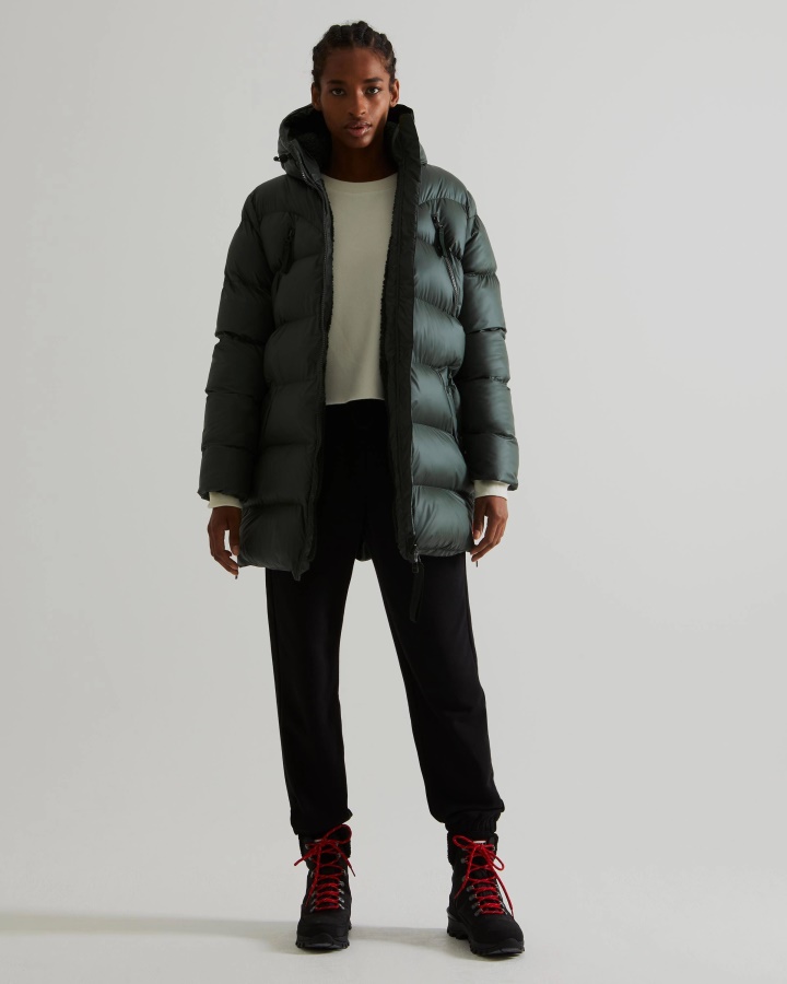 Size/Fit Summary: True to size,Regular fit. Slimmer fit on arms. Model is 176cm / 5' 9?" and is wearing a size S. Centre back measurement for Size S is 30.7" (78cm) and sleeve length from shoulder point is 24.8" (63cm).Note: This Puffer Jacket has been fully padded for optimum warmth,so it may retain a stiffer shape on some figures.We've made two tweaks to our bestselling vegan Women's Rubberized Puffer Jacket to make it even more sustainable. The soft,padded insulation is made from upcycled recycled plastic bottles and the lining is crafted from recycled polyester. With a water-repellent rubberized shell,this deep green jacket will keep you warm in temperatures as low as -25 degree celsius(-13 degrees Fahrenheit).Certified veganWater-resistantShell fabric has a light polyurethane coating for a rubber touch feelHighly insulated using eco-friendly filling made from recycled plastic bottlesFleece lined hood for added warmthFront dome and zip pockets with knuckle side liners for added warmthCentre front Hunter branded zipInternal chest pocket with zip closureConcealed elasticated gaiter on cuffs for added warmthBungee drawcords at waist and hood for adjustabilitySide zips for added ventilationCan be worn in temperatures as low as -25 degree celsius(-13 degrees Fahrenheit)