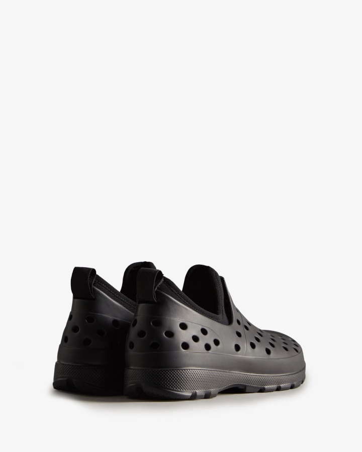 Size/Fit Summary: True to size,Regular fit. If you only wish to wear these water shoes with the sock lining removed,it is recommended to size down.With a removable,washable sock for comfort during long walks and a perforated exterior,which allows the outer shell to be worn separately in water and on the beach,Hunter's new Original Lightweight Outdoor water shoes is engineered for summer's many adventures. Inspired by the runaway success of the Outdoor Sandal,this new addition to the womens aqua shoes collection capitalises on the brand's knowledge of water-resistance. Crafted from the highest quality lightweight EVA with a matte black finish,it fills the gap between sandals and womens beach shoes,providing extra grip on slippery surfaces and traction underfoot for rock-hopping,sand and sports such as kayaking.Waterproof outsoleLightweight EVAFully moulded styleRemovable padded mesh lining sock for comfortPerforations on upper add breathabilityLight contouring on footbed for comfortPull tab for ease of foot entry of aqua shoesEasy to clean and quick dry